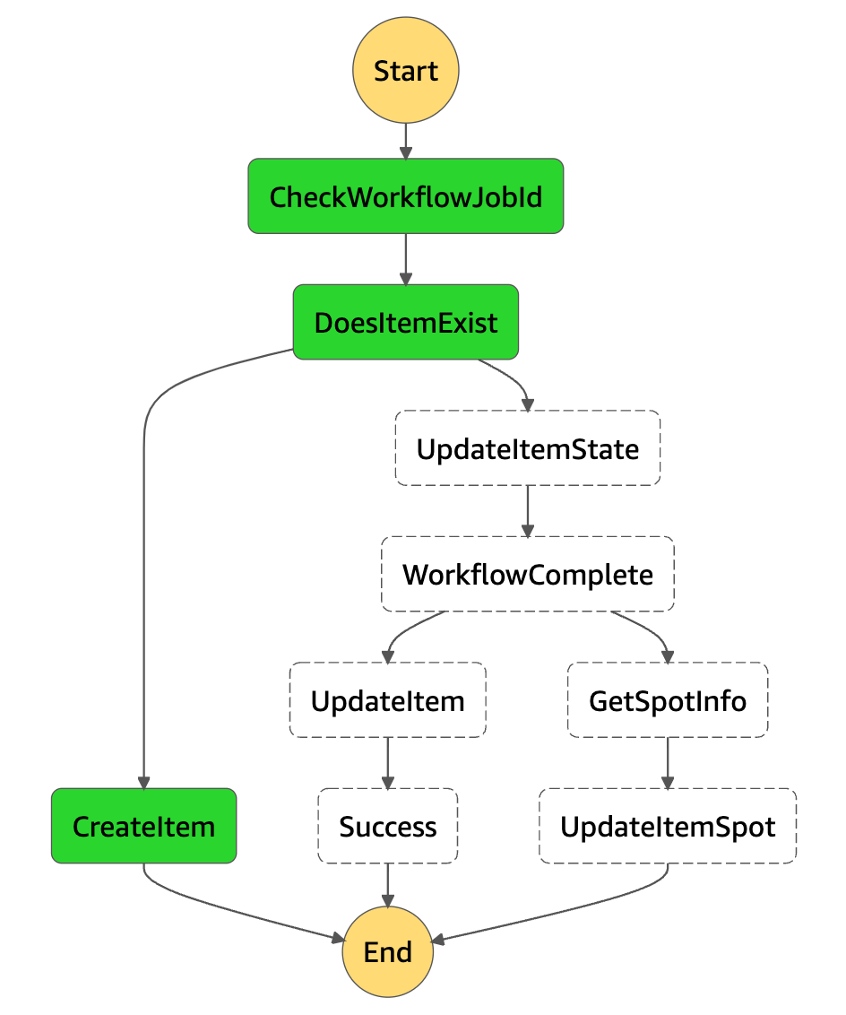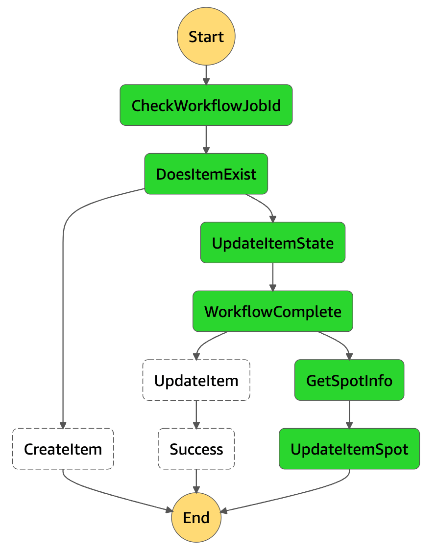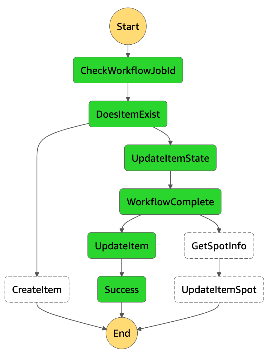 If the workflow is in any other state, we move to retrieve the metadata of the SPOT instance and update the Item.