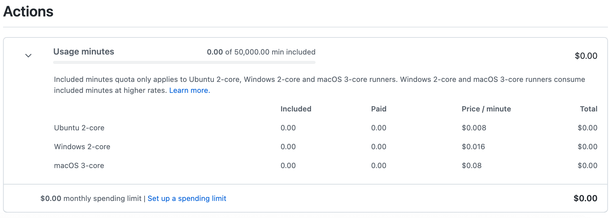 Now don’t get me wrong, this is great, but as each organization within the github.com instance will have different requirements, first, I’m going to run out of hours, and when I do, I’ll need to charge accordingly. Another challenge is the spending limit is again for the whole instance.